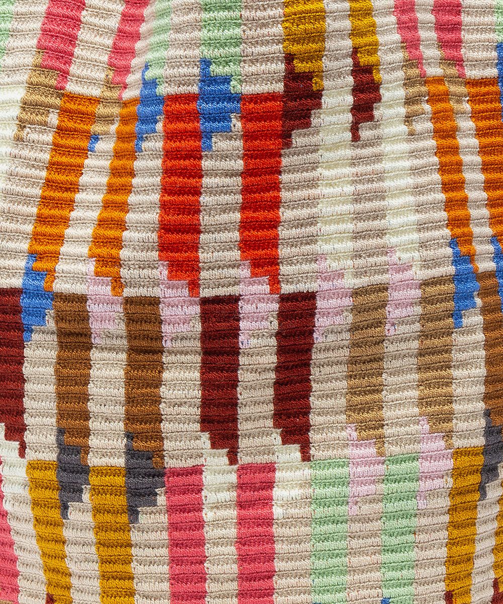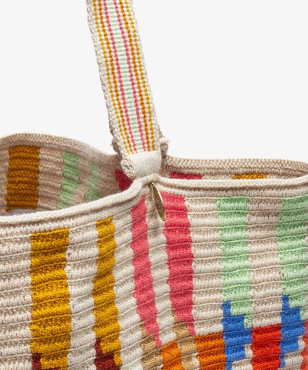 GUANABANA reinvents the classic tote bag, adding a boho-chic touch with geometrical and vibrant patterns. Designed in Madrid and hand-crocheted by Wayuu artisans in Colombia, our Tote Bag has a looser stitch and a long, comfortable Handle that is perfect for any activity. Enjoy this all-around, all-purpose, uncomplicated unisex bag. All our bags carry our distinctive bronze tag with GUANABANA'S leitmotiv: BE POSITIVE.