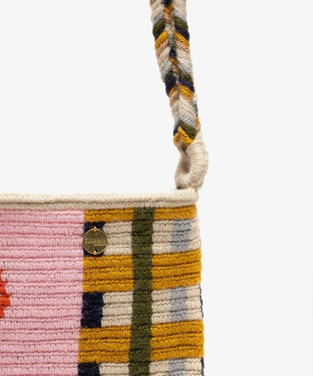 DESIGNED IN MADRID- 100% HANDCRAFTED BY WOMEN IN COLOMBIA, GUANABANA EMBRACES SMALL DIFFERENCES: SIZES OR DESIGNS MAY VARY FROM THE PICTURE. MACHINE WASH IN COLD WATER. Material: 100% acrylic Approximate dimensions: Height: 21 cm (8,3 inches) Width: 16 cm (6,3 inches) Handle: 110 cm (43,3 inches)