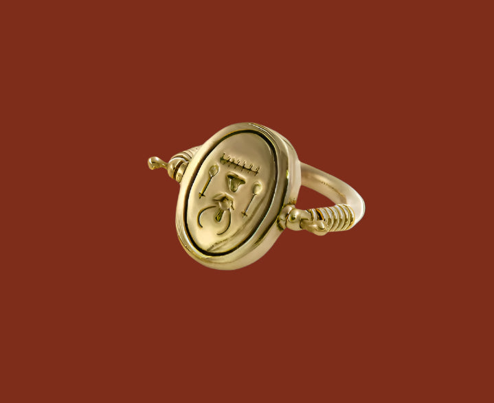 Pivoting ring in gold-plated brass with 3 microns of 999/1000 gold and a lapis stone.