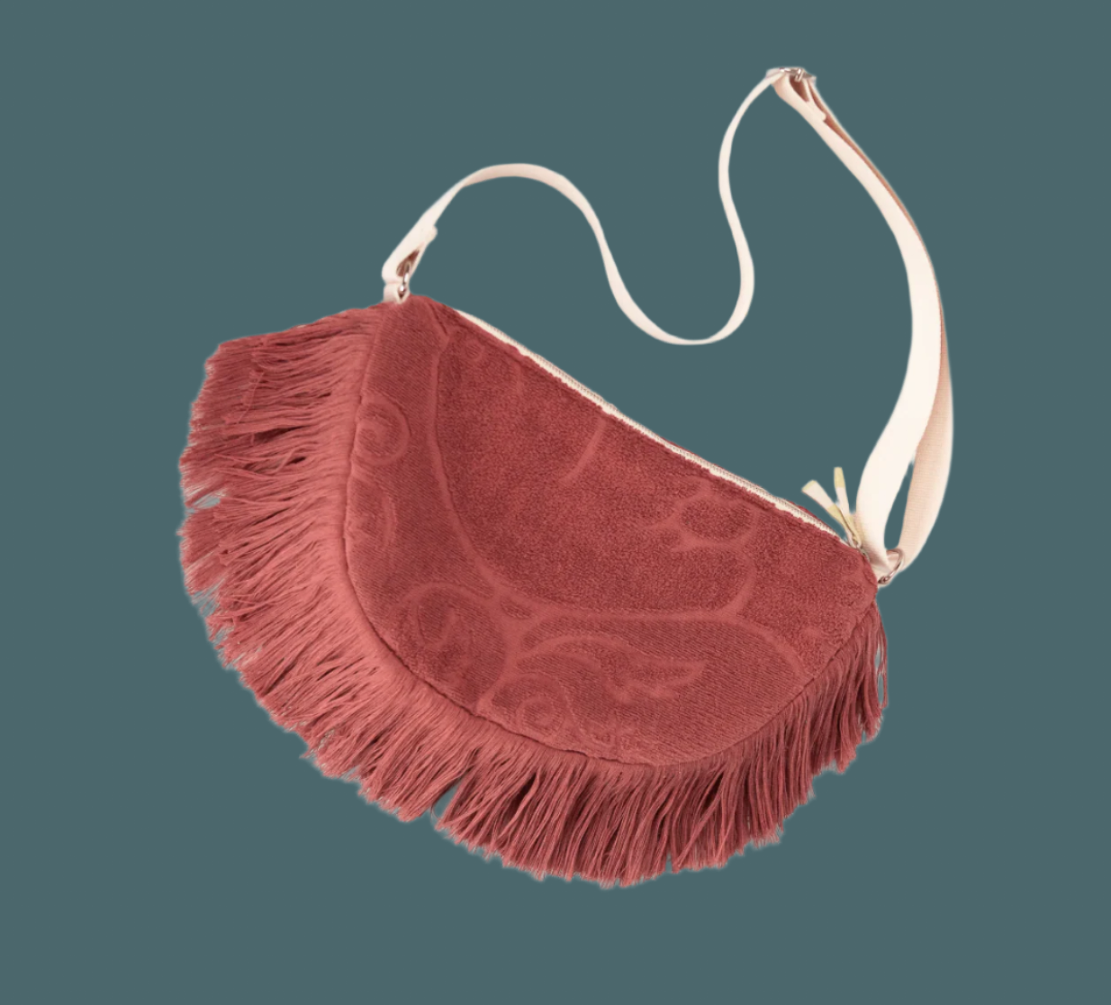 The half moon chic banana bag ANGLET with adjustable cotton strap, extra funky with fringes!