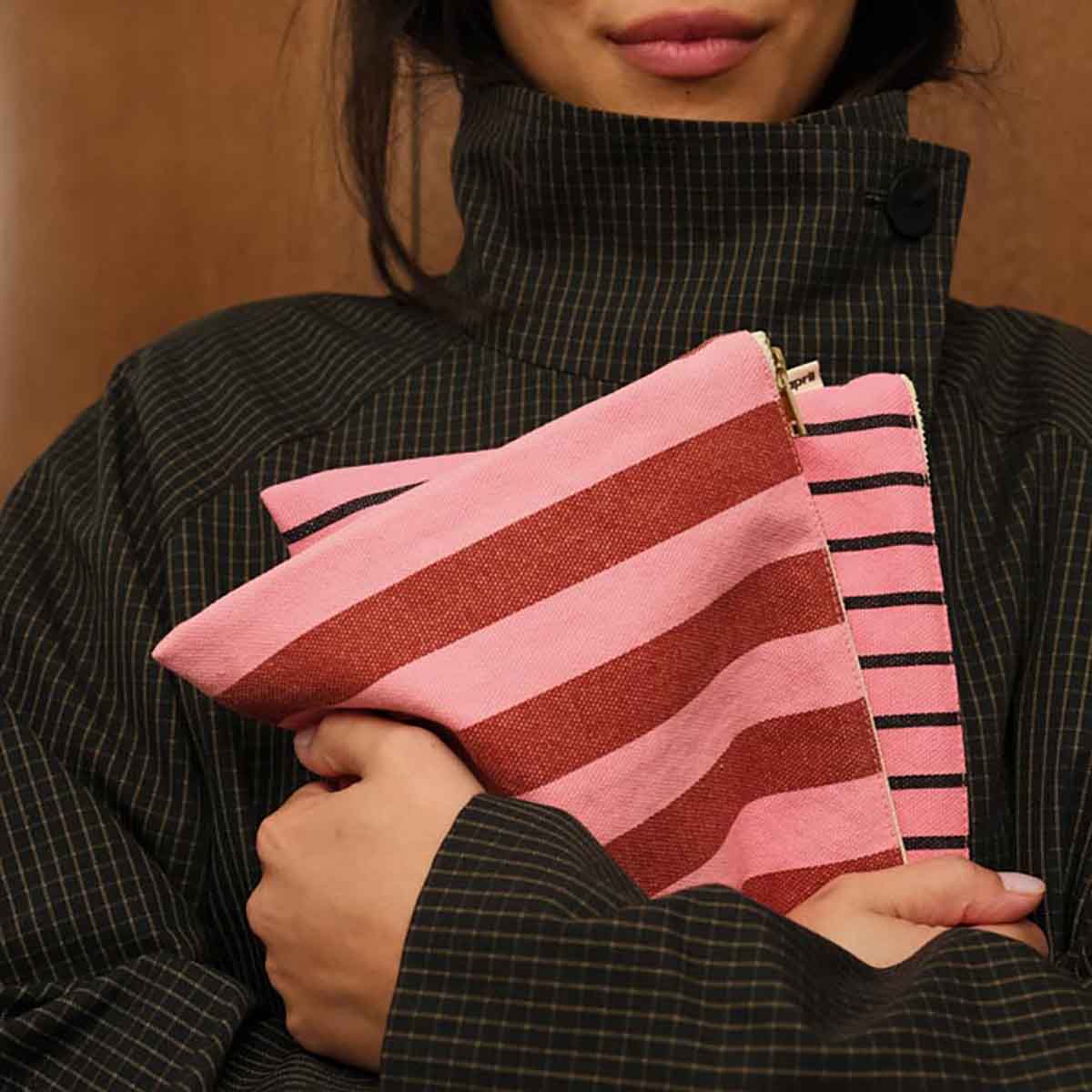 LILI FLAT POUCH STRIPES BRICK / PINK