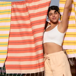 Moroccan Hand Woven Hammam Towel Sunset Reverse