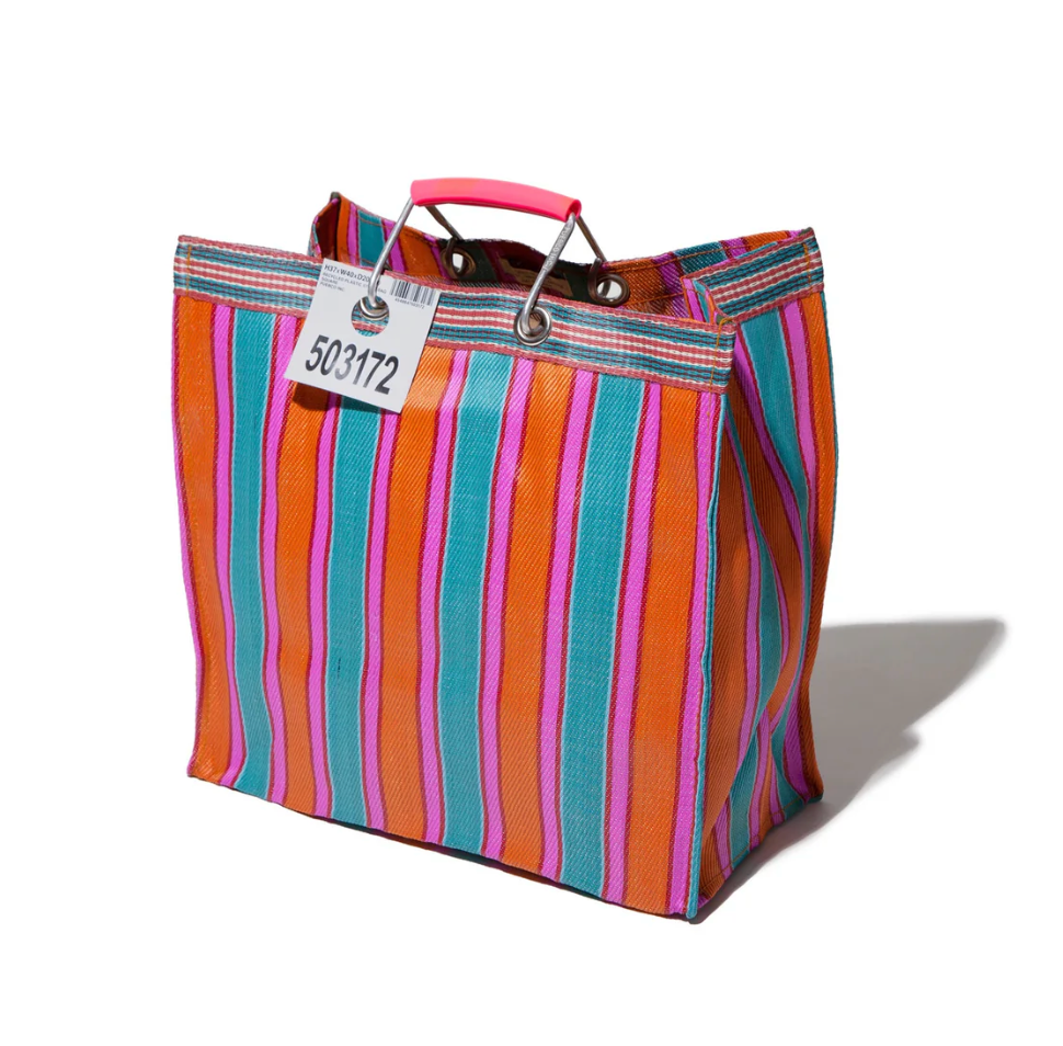 The Recycled Plastic Stripe Bag is the perfect accessory for carrying your essentials. Available in a range of sizes and colours, this vibrant bag is crafted from recycled plastic, making it both stylish and eco-friendly. Please note that due to the recycled nature of the fabric, there may be minor variations in colour and shade between bags, adding to the unique character of each piece.