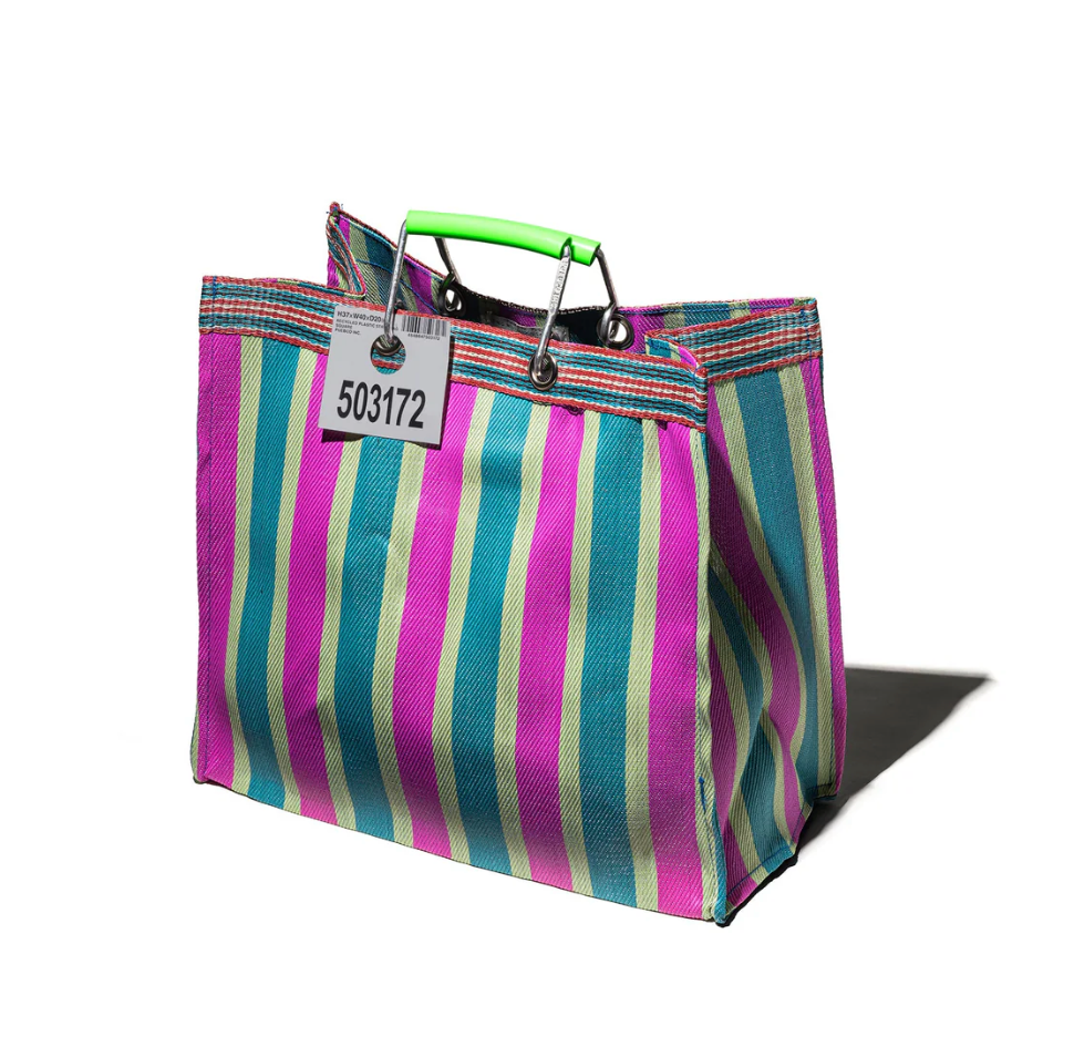 The Recycled Plastic Stripe Bag is the perfect accessory for carrying your essentials. Available in a range of sizes and colours, this vibrant bag is crafted from recycled plastic, making it both stylish and eco-friendly. Please note that due to the recycled nature of the fabric, there may be minor variations in colour and shade between bags, adding to the unique character of each piece.