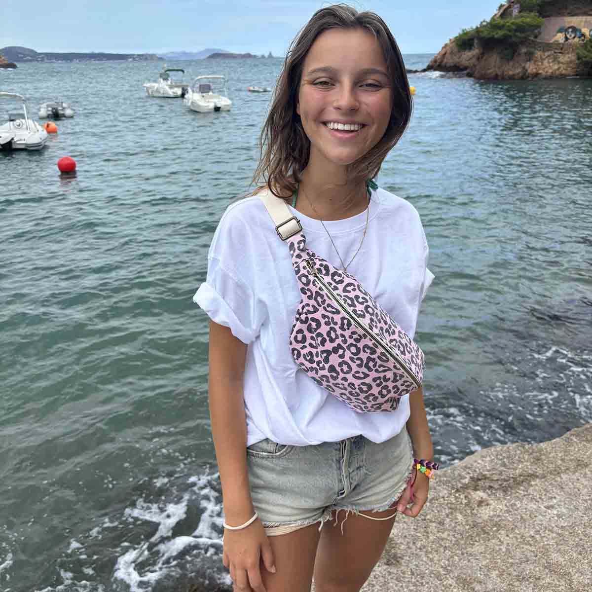 Rose In April Paris Pink Canvas Leopard Print Bum Bag